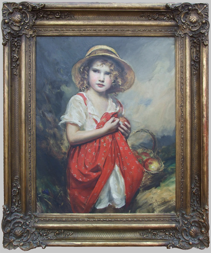 "Junges Mädchen mit Apfel und Apfelkorb"